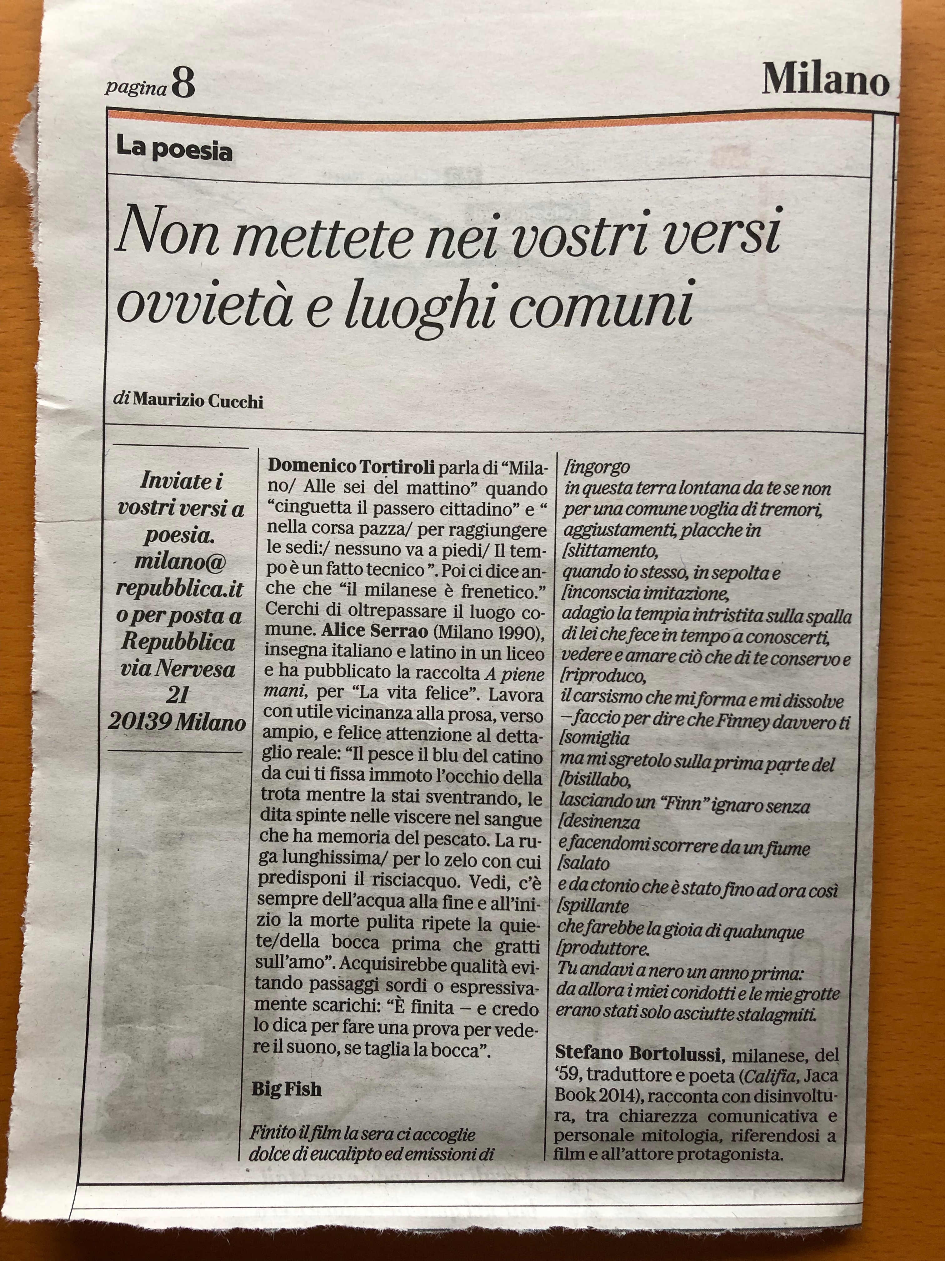 Maurizio Cucchi, per Alice Serrao su Repubblica 18.8.19 Published 28 agosto 2019 at 3024 × 4032 in Maurizio Cucchi, per Alice Serrao su Repubblica 18.8.19 2019_M. Cucchi commenta una mia poesia su Repubblica 18.8.2019